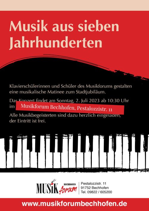 Bleiben Sie informiert, was es Neues im Musikforum Bechhofen gibt. Hier erfahren Sie die Termine für die nächsten Schulkonzerte, Sommerfeste oder Weihnachtsfeiern. Auch über Aktionen oder neue Angebote im Musikunterricht informieren wir Sie hier als erstes.